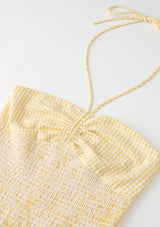 Sweet and effortless, the Elara Mini Dress features a shirred bodice and halter neckline for an easy, flattering fit. Finished with a flouncy ruffle hem, it’s the perfect dress for summer adventures from parties to picnics.