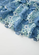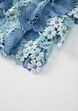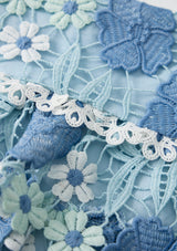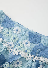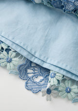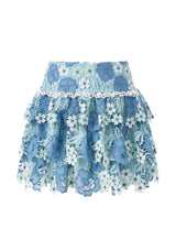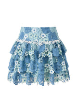 The Jade Frill Embroidered Mini Skirt is a playful, tiered design crafted from intricate powder-blue floral embroidery. Its soft frills and structured waistband make it the perfect pairing to the Jade Halter Neck Top for a coordinated occasion look.