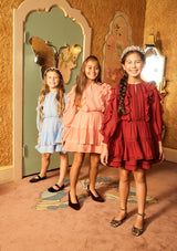 يُعد فستان روزي الصغير الناعم والرقيق والمصمم للاحتفال خيارًا حالمًا لفساتين فتيات الزهور أو حفلات تأكيد الزواج أو أعياد الميلاد. يتميز بكشكشاته الرقيقة وتصميمه الرقيق، فهو فستان ساحر خالد يمكن ارتداؤه.