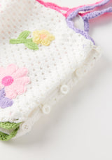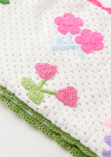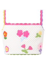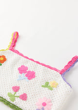 Handcrafted in vibrant crochet, the Daisette Crochet Top is a playful holiday piece designed to be styled from beach to resort. Featuring multicoloured floral motifs and scalloped edges, this cropped silhouette pairs perfectly with the matching Daisette Crochet Mini Skirt.