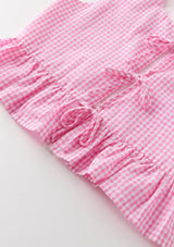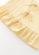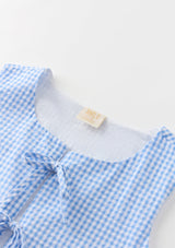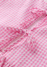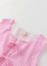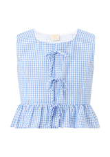 The Elara Top is a charming wardrobe staple, crafted in gingham with delicate tie-front bows and a peplum hem for a playful silhouette. Pair with the Elara Skirt or Shorts for the perfect matching set.