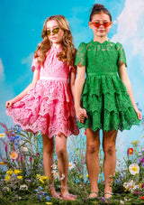 أضيفي لمسة من المرح إلى إطلالتها مع فستان Elsie Dress. يتميز هذا الفستان القصير بكشكشاته المتدرجة وقماش الدانتيل وأكمامه القصيرة مما يجعله مبهجًا لأي مصممة أزياء شابة.