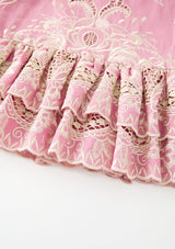 يتميز الفستان القصير المطرز بتطريزات ساحرة بنعومة ورومانسية مع لمسات زهور حالمة. خيار خيالي لفساتين فتيات الزهور أو الفساتين الرسمية للفتيات في حفلات الزفاف وحفلات التعميد.
