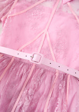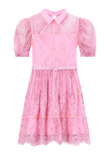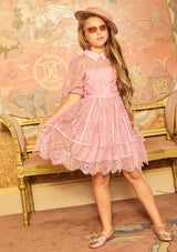 يضفي فستان الدانتيل الصغير المصنوع من الدانتيل Monroe Lace الجميل والأنيق سحرًا مرحًا مع لمسات الدانتيل. خيار رائع لفساتين أعياد الميلاد أو فساتين حفلات الفتيات.