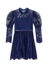 يتميز فستان مونرو القصير بأكمام الدانتيل بتصميم كلاسيكي وأنيق مع تفاصيل الدانتيل المعقدة. خيار مثالي لفساتين تأكيد الزواج في أستراليا أو حفلات التخرج.