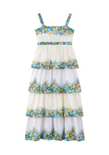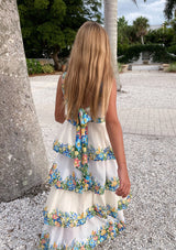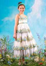 استمتعي بالأناقة مع فستان سيرينتي الماكسي المطرز. يتميز هذا الفستان الماكسي الرائع بكشكشة متعددة الطبقات وطبعة زهور محببة وهو مثالي لأي مناسبة.