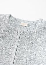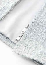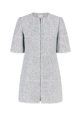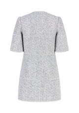 يجتمع التألق مع الأناقة في فستان ستاردست تويد القصير. فهو مصمم لحفلات أعياد الميلاد وحفلات تأكيد الزواج والمناسبات الاحتفالية بفضل بريقه الفضي اللامع وملمس التويد الكلاسيكي.