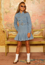 يجتمع الدنيم الخالد مع سحر البنات في فستان ماجي الدنيم القصير. بفضل تصميمه المرح وغسله الناعم، فهو قطعة أساسية متعددة الاستخدامات - يسهل ارتداؤه في حفلات أعياد الميلاد أو ارتداؤه بشكل غير رسمي في المغامرات اليومية.