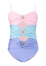 The Josie Full Piece combines bold colour-blocking with playful cut-outs, making it a standout for both beach holidays and poolside lounging. Designed with chic ruching and accented with gold-toned seashell trims, this one-piece silhouette is both stylish and versatile. Adjustable straps ensure comfort and support, while the fully-lined fabrication makes it perfect for long resort days in the sun.