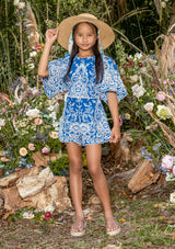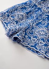 يتميز الرومبر المطرز ماريسا بتصميمه الأنيق والمريح في آن واحد. يتميز بأكمامه القصيرة وتفاصيله المطرزة بلون أزرق ملكي ملفت للنظر، مما يجعله مثاليًا للمغامرات المرحة أو للتأنق.
