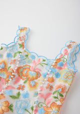 The Bianca Embroidered Mini Dress is a sweet, playful take on one of Marlo’s most loved silhouettes. Featuring vibrant floral embroidery, scalloped straps, and a softly gathered mini skirt, this piece is perfect for birthdays, garden parties, and sun-filled days.