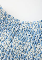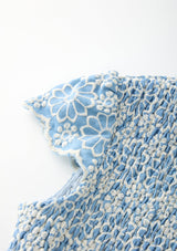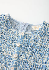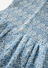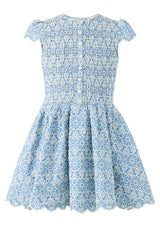 - Smocked detailing through the bodice