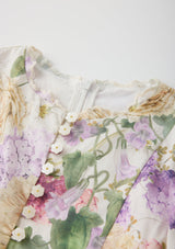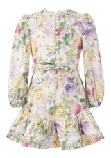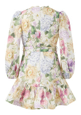 The Seraphina Sleeve Cotton Mini Dress is a dreamy floral silhouette featuring long puff sleeves, delicate button detailing, and a soft tie-waist for a flattering fit. A timeless style that blends elegance with playful charm — perfect for special occasions and picture-perfect moments.