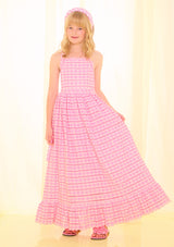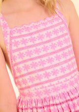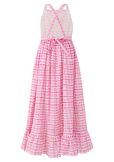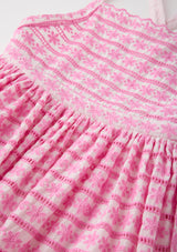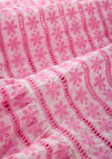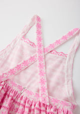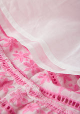 The Odessa Embroidered Maxi Dress is a whimsical statement style adorned with pink floral embroidery and cascading tiered layers. With its dreamy colour palette and flowing maxi silhouette, this dress is perfect for garden parties, celebrations, and special occasions.