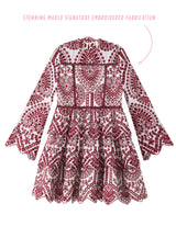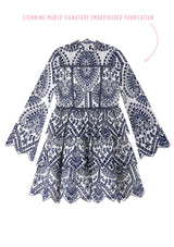 The Desire Dress is a signature mini dress with Marlo exclusive embroidery, long sleeves, and a tiered ruffle skirt. This dress is perfect for creating a stylish and unique look.