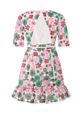 The Everlee Embroidered Dress is a mini dress with Marlo exclusive floral embroidery, three-quarter sleeves, and open back detailing. This dress offers a charming and stylish look, perfect for any event.