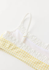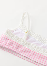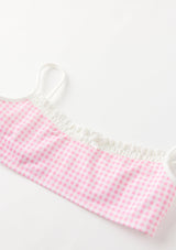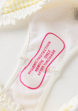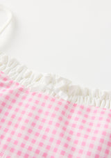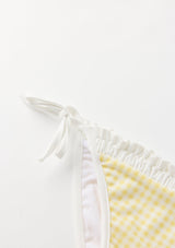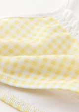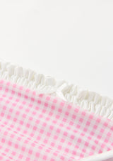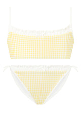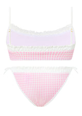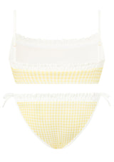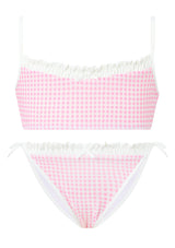 Playful and versatile, the Elara Bikini is perfect for beach days, poolside fun, and holiday escapes. The set features a gingham print with ruffle trim and bow detailing, finished with adjustable straps and tie-sides for a custom fit. A chic resort staple she’ll wear all season long. Mix and match with the Charlotte Terry Towelling Shorts or Mini Wrap Skirt for the perfect resort set
