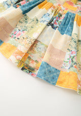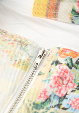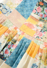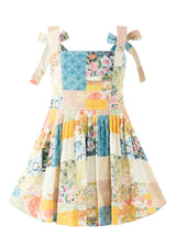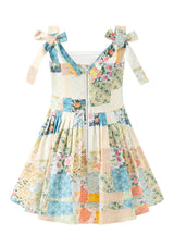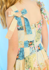 The Daniella Denim Mini Dress is a fresh, modern take on patchwork florals, blending denim-inspired texture with intricate embroidered panels. Featuring a structured bodice, tie straps, and a softly gathered skirt, this dress is both playful and polished.