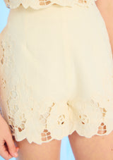 The Kaitlyn Embroidered Shorts are a refined take on a warm-weather essential. Designed in soft cream florals with scalloped embroidery and structured tailoring, these shorts are perfect for pairing with the matching top or a simple tee for effortless summer elegance.