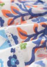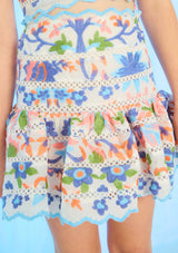 The Sarah Embroidered Mini Skirt is a colourful, feminine silhouette designed to pair effortlessly with the Sarah Embroidered Top. Featuring scalloped edging, embroidered panel work, and a softly flared hem, this mini is perfect for warm-weather dressing and special summer celebrations.
