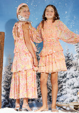 The Alexa Floral Frill Dress brings delightful charm to any event with its exclusive Marlo floral print and playful balloon sleeves. Perfect for twirls and swirls, this dress will make your little one stand out in style.