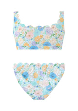 The Azure Bikini is a playful two-piece bikini with scallop detailing, bringing sweetness and charm alongside an exclusive Marlo floral print fabrication. Perfect for playful days in the sun, this piece is fully-lined, Ultra-soft high quality fabric.