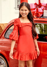 Make a bold holiday statement with the Bow Dress. Featuring a striking oversized bow front detail and a classic red hue, this dress is perfect for any festive occasion. The elegant silhouette and beautiful detailing make this a holiday must-have.