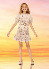 The Chiara Embroidered Mini Dress in floral print is a perfect mix of fun and elegance! With delicate embroidery and a flattering fit, this dress is perfect for any occasion. Whether it’s a playdate or a birthday party, she’ll look and feel her best in this charming dress.