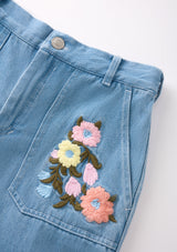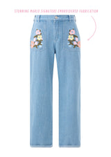 The Grace Embroidered Jeans are denim jeans with exclusive Marlo floral embroidery, ideal for pairing with the Grace Knitted Cardi. These jeans offer a stylish and comfortable look for any casual occasion.