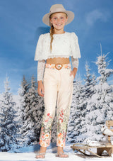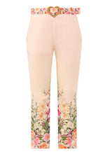 The Harper Floral Pants feature a Marlo exclusive floral print and a detachable matching belt with a heart-shaped buckle. Perfect for pairing with a white t-shirt or the Gabriella Lace Top, these pants are a stylish choice.