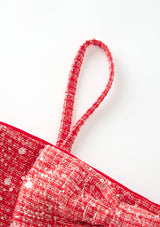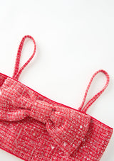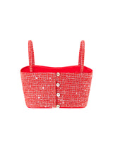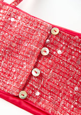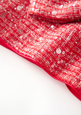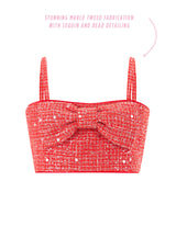 Celebrate the season in style with the Jingle Top. Featuring a gorgeous tweed fabrication with sequin and bead detailing, this classic top stands out with a bold oversized front bow. This vibrant red top, designed to pair with the Jingle Skirt and Jacket, is perfect for mixing and matching festive looks. Its tailored fit adds a polished finish to any holiday outfit.