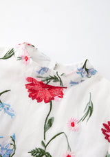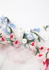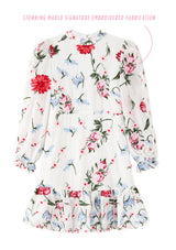 The Maisie Embroidered Dress is a mini dress with an embroidered floral print, long sleeves, and open back detailing. This dress offers a stylish and unique look, perfect for any special occasion.