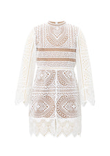 The Mania Lace Dress is a signature silhouette with elegant lace fabrication and long sleeves, perfect for special occasions. It offers a timeless and sophisticated look that will make any event magical.