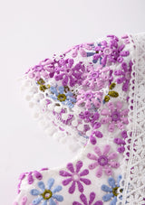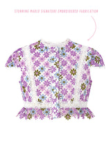 The Sadie Embroidered Top features Marlo exclusive floral embroidery and flutter sleeves, perfect for pairing with jeans or the matching Sadie Embroidered Skirt for a sweet ensemble.