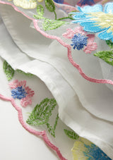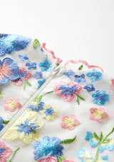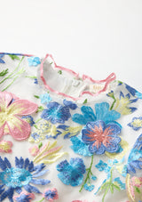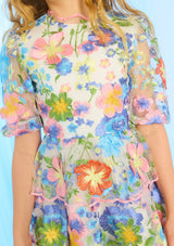 The Laura Embroidered Mini Dress is a vibrant, whimsical silhouette adorned with colourful floral embroidery. Featuring soft puff sleeves, layered frills, and a playful skirt, this standout piece is made for birthday celebrations, garden parties, and magical moments.