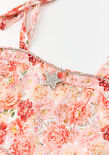 Step into the holiday season in our Amelia Top - a festive favourite designed for making magical memories. Featuring a vibrant floral print with shimmering diamanté trim and bow-tied shoulder straps, this statement style is perfect for pairing with the matching Amelia Skirt for a complete holiday look.