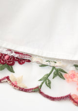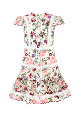 A timeless favourite, the Anya Embroidered Mini Dress blends delicate florals with a classic silhouette. Perfect as a flower girl dress or formal dress for girls, it shines at weddings, communions, or birthday parties.