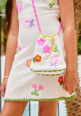 Complete your holiday look with the Daisette Crochet Bag - a playful accessory crafted in hand-crochet with floral motifs. Its compact shape makes it perfect for summer adventures, pairing effortlessly with the matching Daisette set for a coordinated resort look.