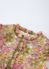 The Ella Embroidered Dress is an adorable mini dress adorned with exclusive Marlo floral embroidery. Pair with pink strappy sandals for the perfect ensemble