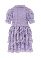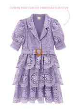 Embrace elegance with the Aurora Embroidered Dress. Featuring embroidered fabrication, short sleeves, tiered ruffle skirt, collared neckline, and a matching belt, it's perfect for any event.