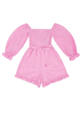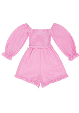 Look to the Greta Gingham Romper for the perfect outfit for any outdoor occasion spent running around in the sun. Crafted from a lightweight fabrication, this cute frock features a gingham print, off the shoulder silhouette, tie-belt waist and balloon sleeves. Style with white sneakers for an outfit that will make her stand out from the crowd.