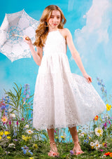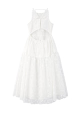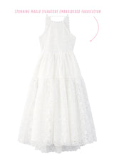 Our Sadie Embroidered Maxi Dress brings sophistication to any occasion. With its sleeveless design, embroidered floral fabrication, and open back detailing, it's perfect for confirmations, graduations, or any other special event.