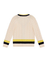 Wrap your little gentleman in warmth and style with our Charles Cardigan. This knit cardigan features striped details, adding a touch of charm to any outfit. Perfect for layering on chilly days, it's a must-have for every dapper young man's wardrobe.