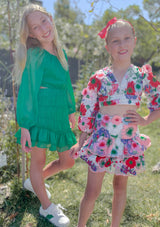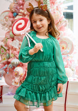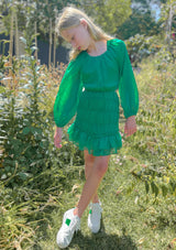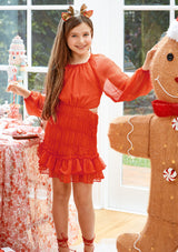 Skip along in the Gabriel Dress. The perfect classic sundress for festive season! Featuring a lightweight fabrication, airy sleeves and a belted waist, this dress is dripping in ruffles that frame the silhouette. Perfect for dancing and twirling around these holidays, this dress is essential for any minis wardrobe.
